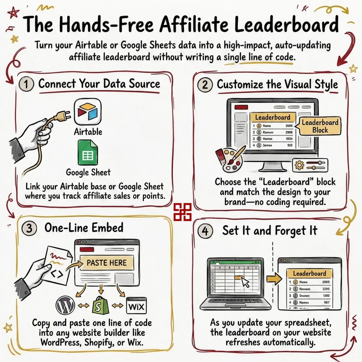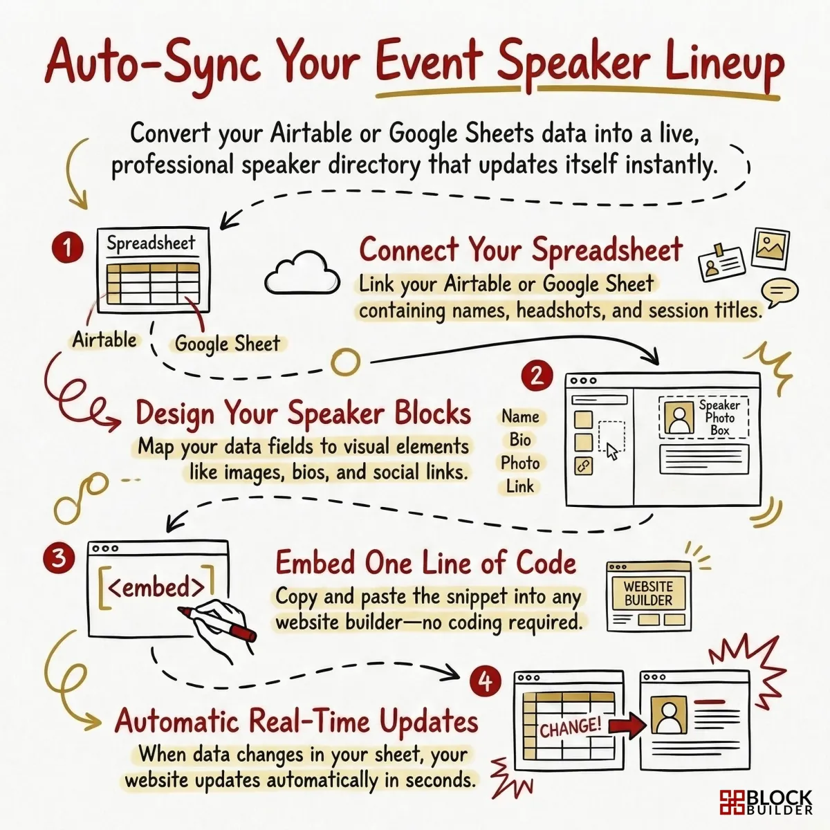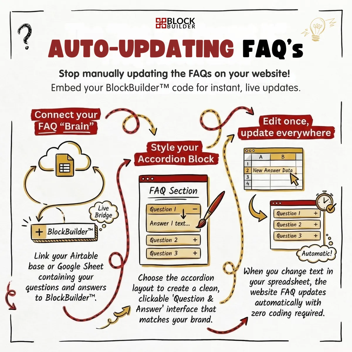 It's automatic! 🎉BlockBuilder™ turns your Airtable or Google Sheets data into live blocks you can embed onto unlimited pages and emails — without building a full app.