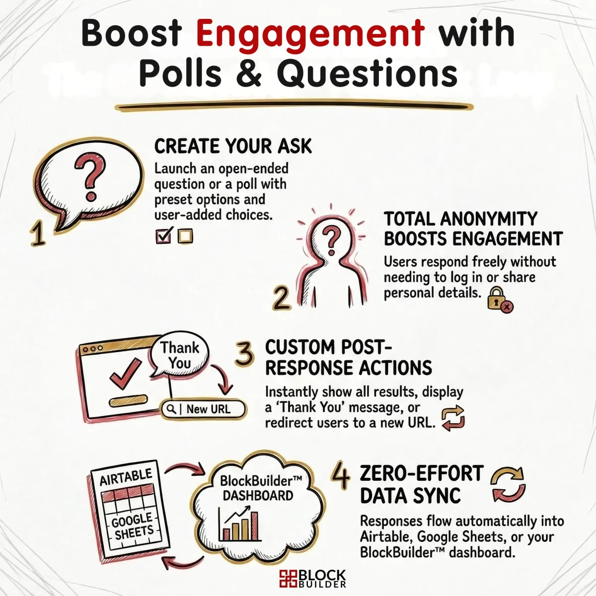 Use this same block in your business to collect feedback, engage your audience, conduct market research, gather success stories, and more.